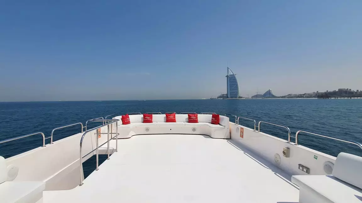 A professional crew of four ensures every detail of your journey is seamless. From setting up the perfect ambiance to navigating Dubai’s stunning waters, the crew is dedicated to making your experience exceptional. Whether you want a romantic sunset cruise or a lively party on the waves, this yacht delivers it all with unmatched service.